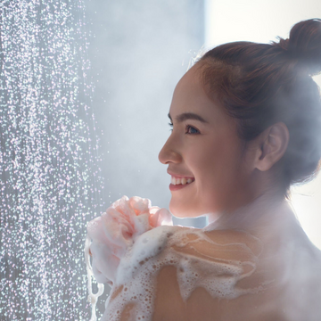 - In the shower, wet and warm the body for 5 to 10 minutes.