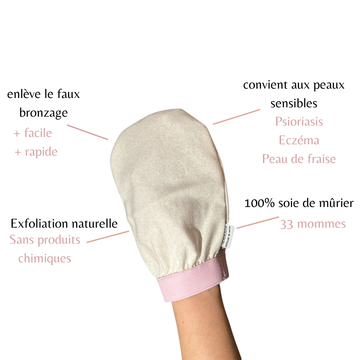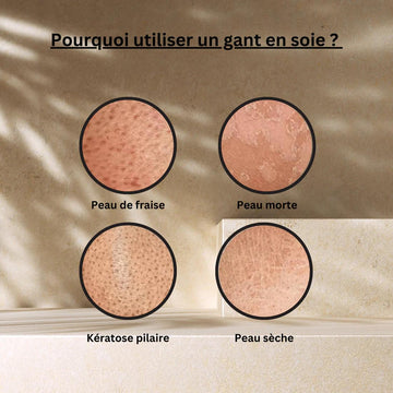 Thanks to the natural proteins contained in mulberry silk, the silk exfoliating glove reaches deep dead cells, thus allowing skin problems to be treated in depth.