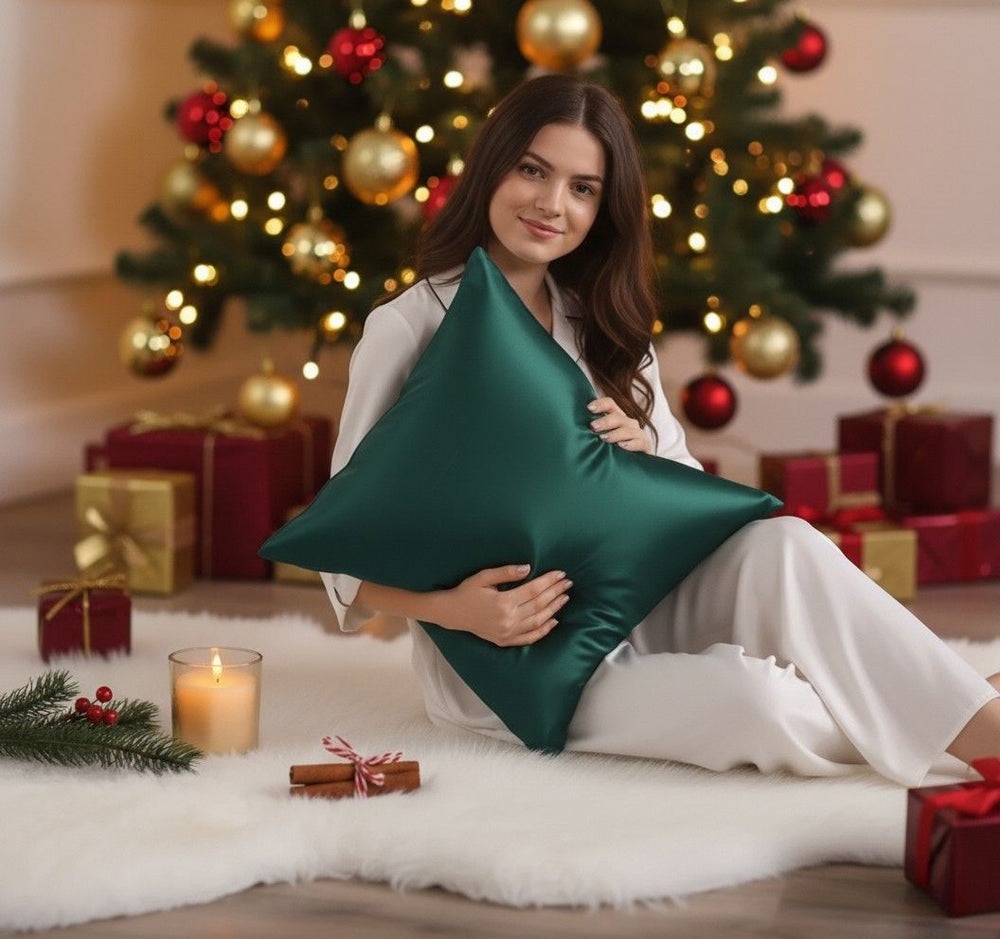 TAIE D'OREILLER 100% SOIE 22 MOMMES - CHRISTMAS EMERALD
